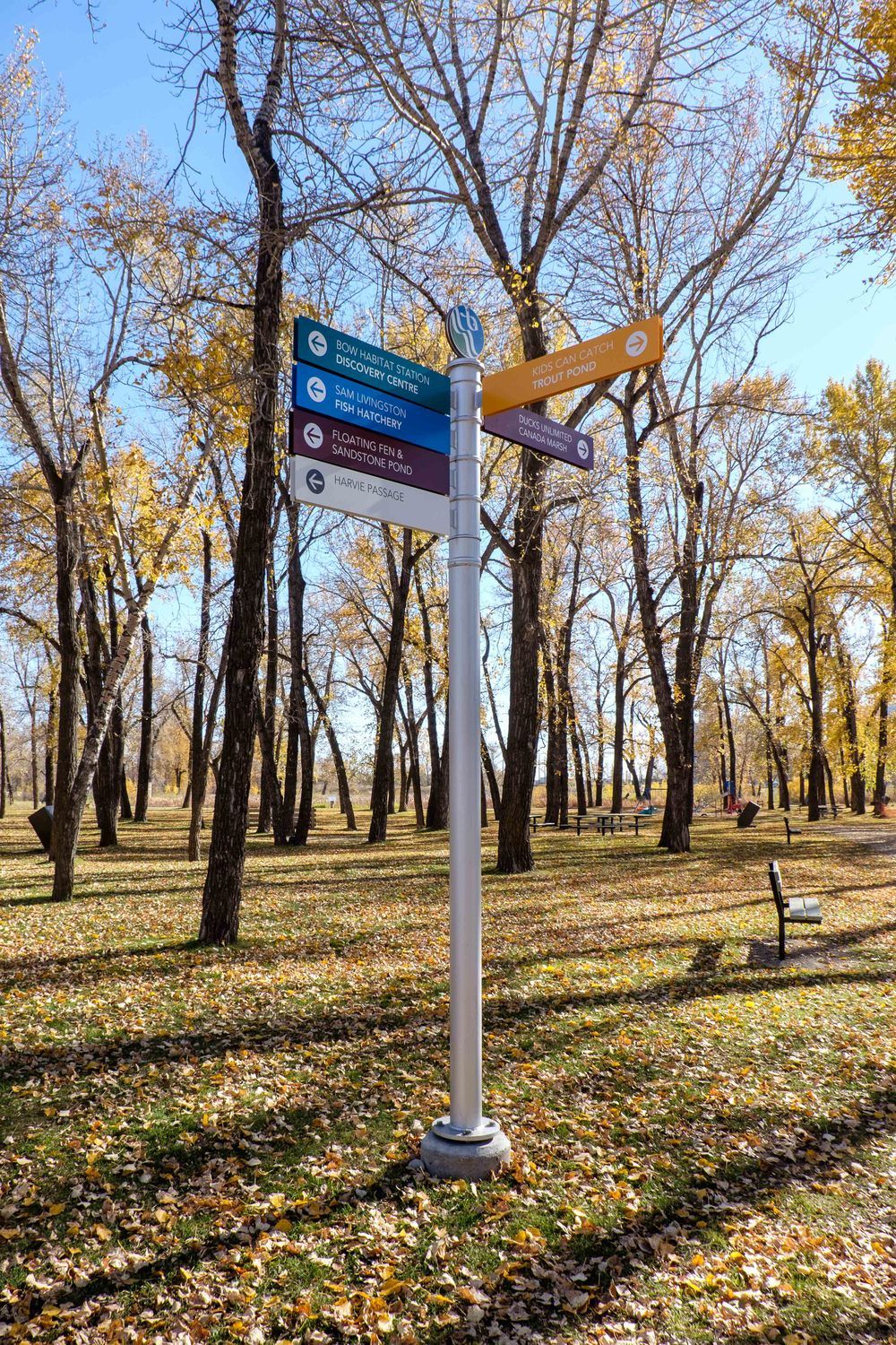 A recent rebranding initiative left Bow Habitat Station in need of updated signage. I was given the assignment to develop the wayfinding system, building signage, and donor recognition consistent with their new brand. Conceptual development and design was my primary role in this project, sharing the responsibility of project management with a colleague. Project required coordinating geotechnical data, building permits, and structural engineering.